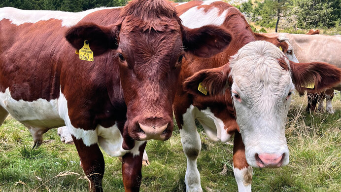 Die Ochsen werden zum Teil in kleinen Gruppen in offenen Ställen mit Stroheinstreu gehalten. Die Landwirte füttern so weit wie möglich hofeigenes oder regional angebautes Futter. Bei unserem Besuch auf dem Hof der Familie Pirker in Maria Saal waren wir beeindruckt, wie ruhig und entspannt die Tiere trotz der fremden Besucher waren. Im Frühling geht es für viele der Tiere auf eine der unzähligen bewirtschafteten Almen.