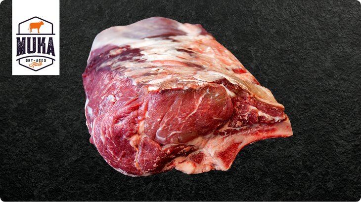Das stark marmorierte Fleisch stammt aus dem oberen Teil des Rinderrückens. Die Kombination aus Trockenreifung und Marmorierung garantiert eine Geschmacksexplosion.