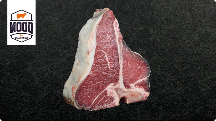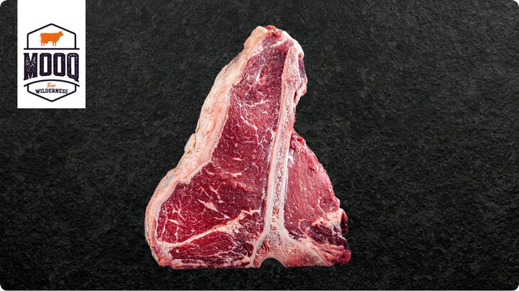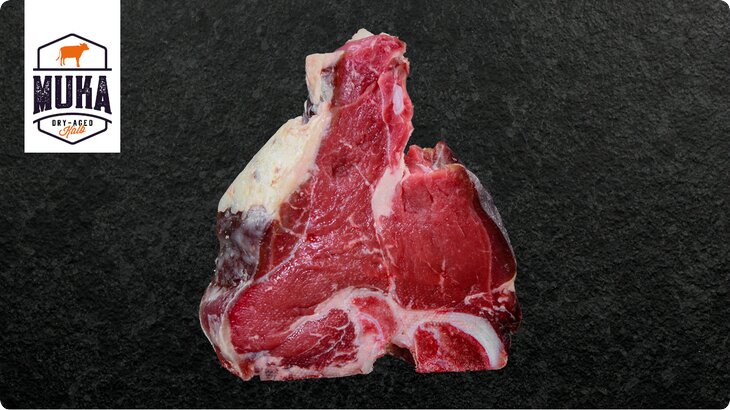 Ein ganz besonderer Leckerbissen ist das Dry Aged T-Bone Steak vom Kalb. Das Steak wird aus dem Rücken des Kalbes geschnitten und zeichnet sich durch den klassischen T-Knochen aus. Mit feinstem Filet auf der einen und saftigem Roastbeef auf der anderen Seite verwöhnt das Steak jeden Gaumen mit höchstem Genuss. Mit seiner feinen Marmorierung ist es an Saftigkeit kaum zu übertreffen. Das T-Bone Steak vom Kalb vereint Geschmack und Textur.