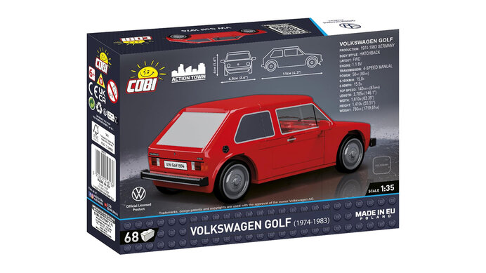 Mit dem Bausteinset VOLKSWAGEN GOLF (1974-1983) von COBI im Maßstab 1:35 können Sie ein Modell des Autos bauen, das in den 1970er Jahren die Automobilindustrie revolutionierte und das Erbe des berühmten Käfers übernahm, der jahrzehntelang hat die Herzen von Fahrern auf der ganzen Welt erobert.