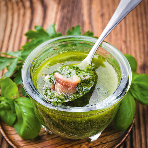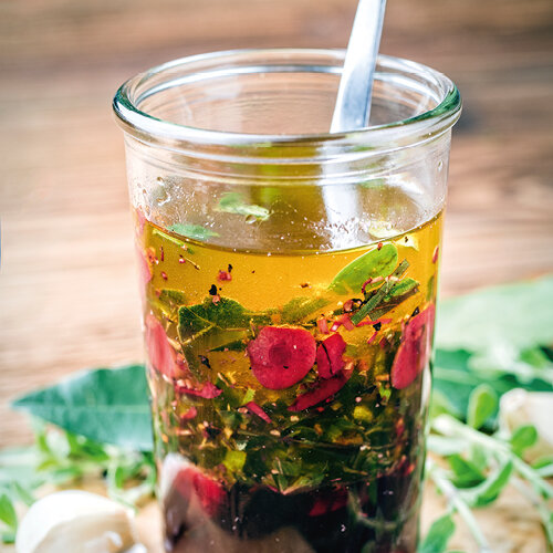 mit Thai-Beef, Kräutern und Senf-Vinaigrette