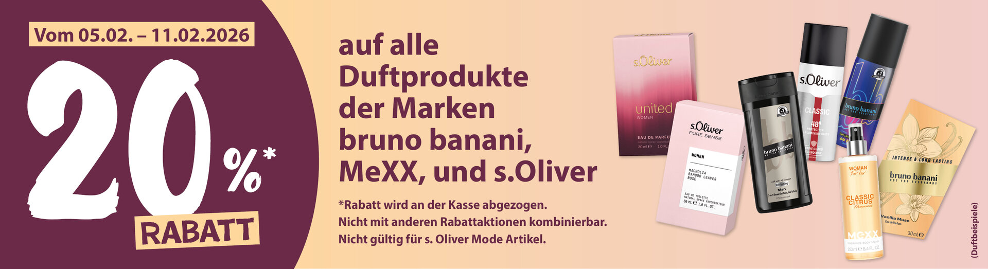 Vom 05.02. - 11.02.2026 gibt es 20 %* Rabatt auf alle Duftprodukte der Marken: