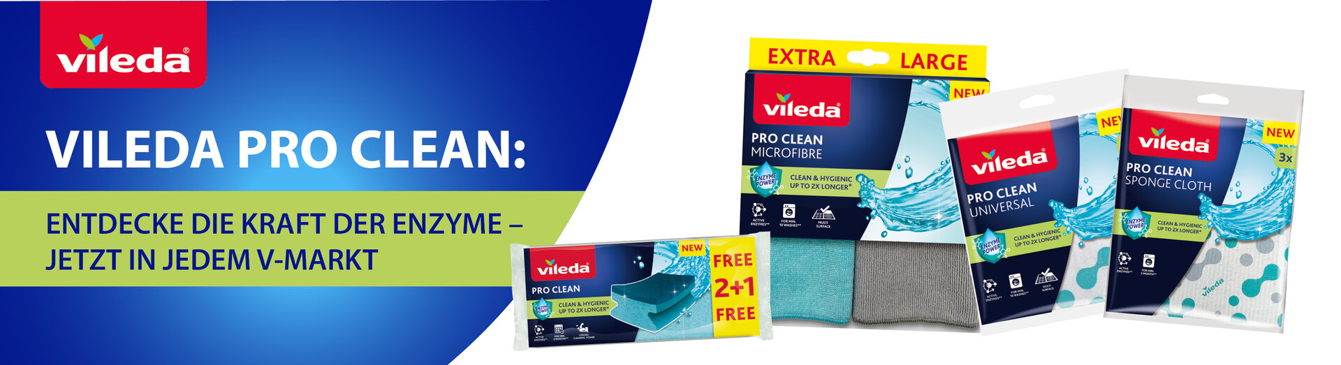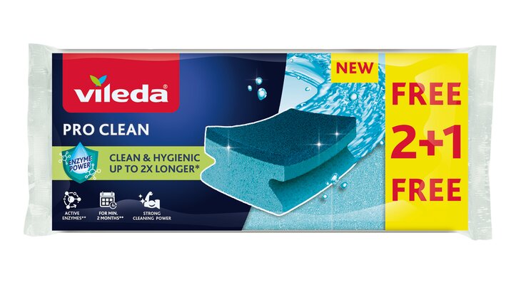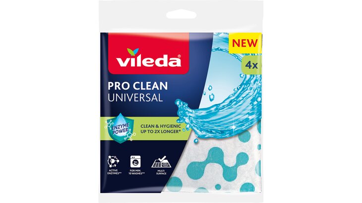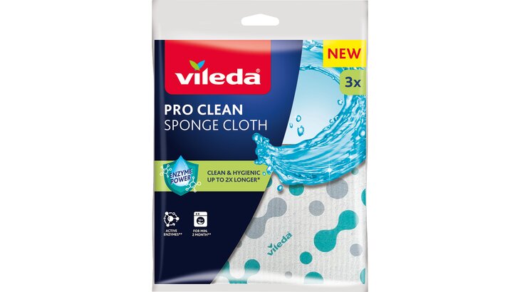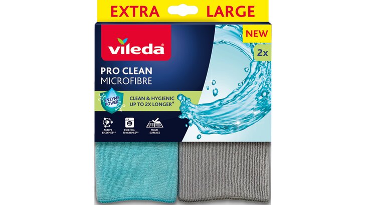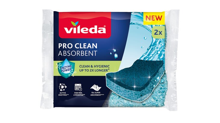 Entdecke VILEDA PRO CLEAN unsere neue Produktreihe mit Tüchern und Topfreinigern, die auf natürliche Weise länger hygienisch bleiben. Die PRO CLEAN-Produkte sind mit nützlichen Mikroorganismen (Probiotika) behandelt, die bei Kontakt mit Feuchtigkeit und Schmutz natürliche Enzyme produzieren. Diese Enzyme zersetzen Fett und Schmutz in mikroskopisch kleine Partikel, was das Ausspülen des Produkts erleichtert und schlechte Gerüche sowie Schmutzablagerungen reduziert. Einmal aktiviert, bleiben die Enzyme im Produkt und halten es bis zu doppelt so lange sauber und hygienisch.*